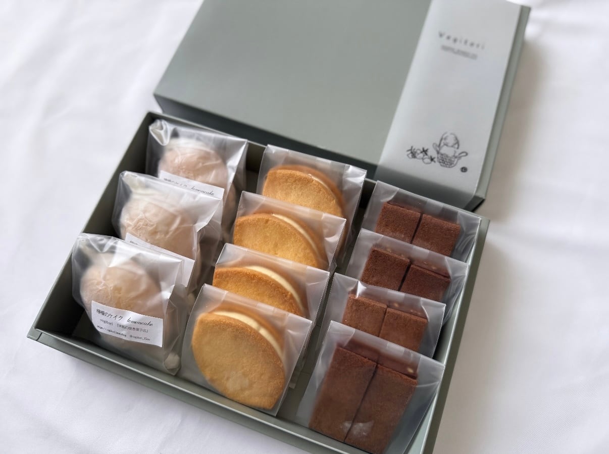 卵、グラスフェッドバター、きび糖、粉糖、米粉、生クリーム、檸檬果汁、表皮/ベーキングパウダー(アルミフリー)